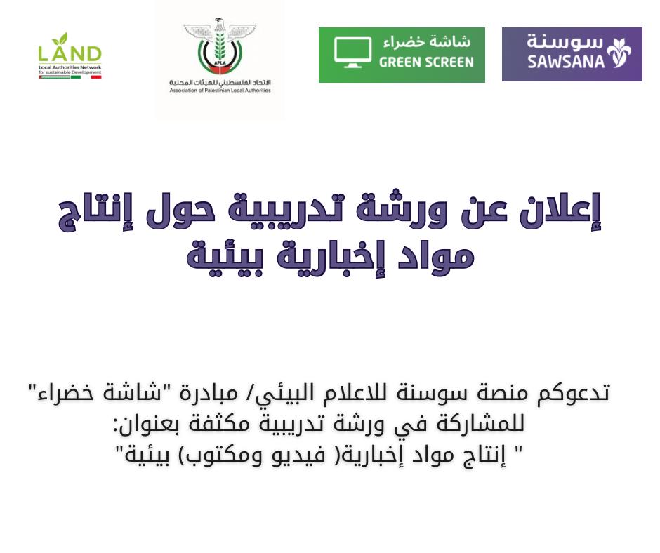 تعلن منصة سوسنة للاعلام البيئي/ مبادرة “شاشة خضراء” عن تنفيذ ورشة تدريبية مكثفة لمدة يومين بعنوان:” إنتاج مواد إخبارية(